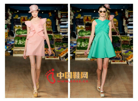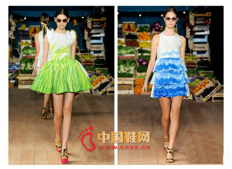 【】对于坚守实穿、优雅路线的米兰时装界而言,有风格戏谑的莫斯奇诺 (Moschino) 的存在实在是个异数,它以惯用戏谑表现方式而着名。是莫斯奇诺 (Moschino) 旗下副线之一。Moschino Cheap And Chic 2012春夏系列秀场造型在米兰时装周上发布。它主攻的是少女市场,在2012春夏系列的设计中充满了春天氛围的裙子,甜美的蔬果元素加上亮丽的色彩、青春的造型,吸引了不少少女的眼球。拥有这样一件裙子,可以大大提升你的甜美度。