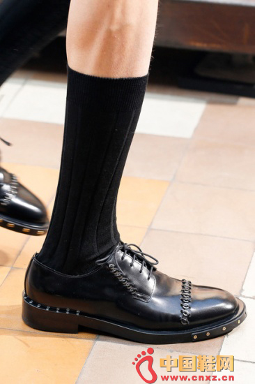 Lanvin 2014春夏男装秀场。本季Lanvin的鞋履都遵循了复古路线,在经典鞋款的基础上,加入了铆钉元素,使复古和流行完美结合在一起。