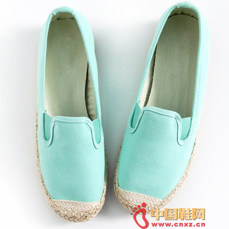 俏丽的浅粉绿色调休闲鞋,麦秸编织鞋底,自然的休闲风,很舒服的平底款式,鞋口有松紧细节的处理,穿脱方便自然。