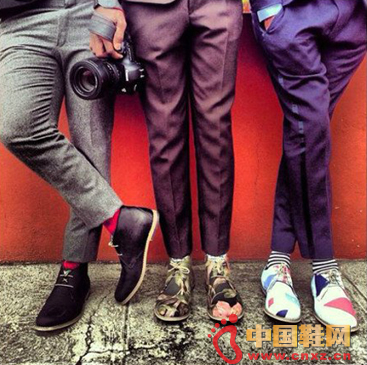 做英伦装扮的时候,可以选择深色皮质Chukka——高帮休闲鞋鞋款,用亮色袜子做点缀,穿上九分裤,露出一点点袜子,骚气十足。