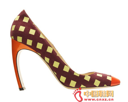 拼接款高跟鞋,鞋头的配色拼接很有魅力,绒面的鞋身格纹设计,凸显了柔美的女人味。(合作媒体:)