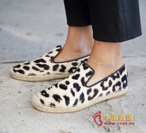 编织底潮鞋,鞋身的豹纹点缀与鞋底的编织相融合,独特又显霸气。