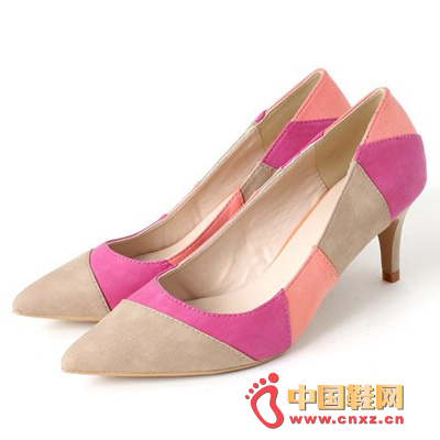女人味十足的尖头高跟鞋,拼色设计时尚妩媚。