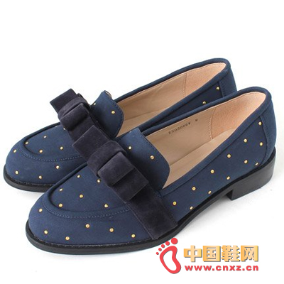 藏蓝色铆钉装饰单鞋,非常适合搭配TOM BOY的俏皮造型。