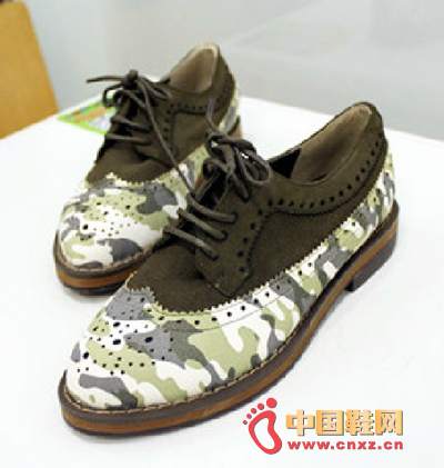 配色很丰富的牛津鞋,简约款式的设计,但迷彩的配色很有亮点,不管是搭配或者连衣裙都很合适。