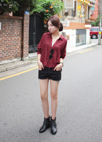 衬衫、、短靴,清穿就要这样穿,到脚踝位置的短靴很好的修饰了腿型,露出又细又长的美腿。(合作媒体:)
