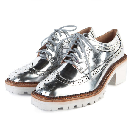 复古的英伦风银色,锯齿状的鞋底加粗跟,搭配锥形裤才能显示出最出彩的效果。(合作媒体:)