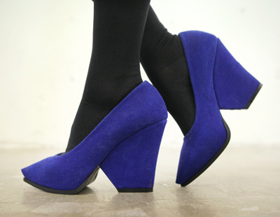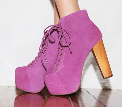 紫色,简洁的系带款,百搭性也是超强的,厚防水台与木质粗跟的设计也显得脚感舒适。