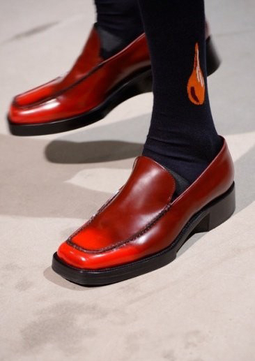 本季的Raf Simons不仅推出了鞋型超好的方头鞋,而且将本季彩色的波普元素也融于鞋的设计中,红色,绿色,蓝色的渐变效果显得毫不低调,非常适合玩乐场合 (合作媒体:)