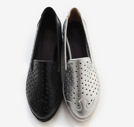 休闲的厚底休闲鞋,独特的钻孔设计,搭配袜子穿可以透出袜子,给造型增加亮点。