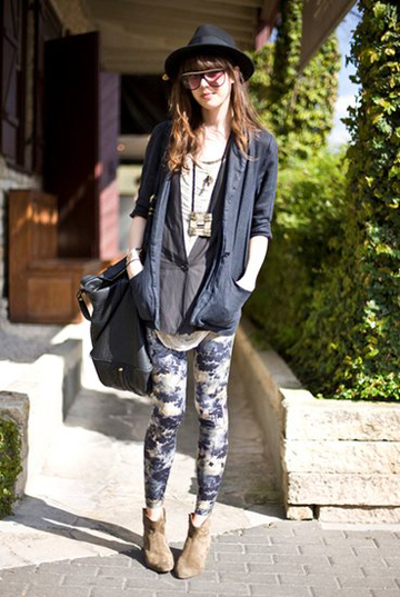 踝靴与印花紧身裤,给微凉的秋季带来暖流。