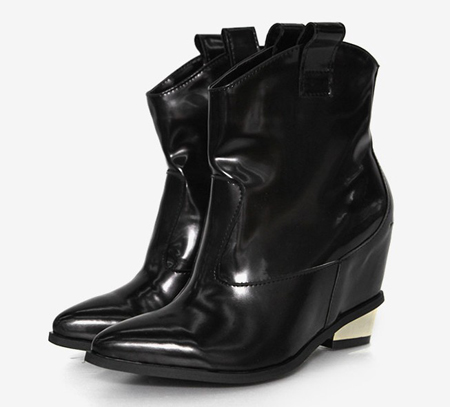 魅力款内增高短靴,简练的尖鞋头设计,亮面漆皮材质,可以给造型增加亮点。