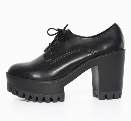 很有范儿的中性风厚底高跟鞋,鞋带开襟处理,10cm的跟高,而且鞋底是很厚,穿起来特别舒服又显个子。