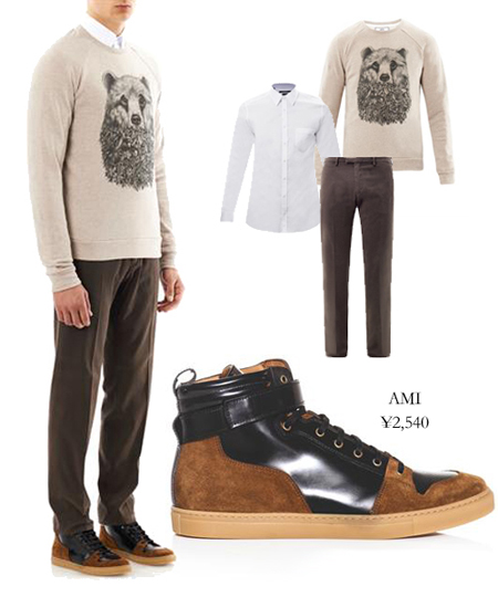 近来十分流行的拼接款式在男士高帮鞋上也表现的淋漓尽致。这款黑色皮革与棕色翻毛完美结合的时尚高帮鞋,休闲与正统融于一身,不知道你是否满意呢。配搭深色休闲直筒裤,浅色毛衣与衬衫,利落的领子会显得更加精致与时尚。