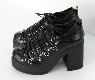 个性独特的厚底粗跟鞋,鞋带的造型是一大亮点,可以调节,粗跟设计,穿着很稳很舒适而且还很轻便。