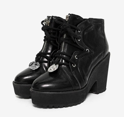 设计独特的工装鞋,鞋带开襟,前面有拉链配置,厚厚的防水台设计,可以减轻脚掌压力,穿着更加舒适。(合作媒体: