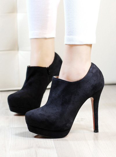 绒面高跟裸靴,低调沉稳黑色系,穿出干练的优雅女人味,厚实的防水台设计,脚感很舒适。(合作媒体:)
