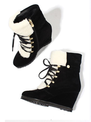 坡跟皮草短靴,面料和颜色的拼接十分与众不同,上脚摩登又不过于夸张。