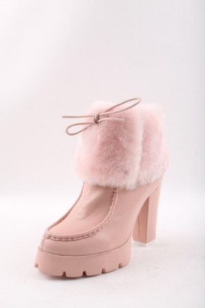 粉色皮草短靴,非常甜美的款式,粉色的俗气被精良的设计和剪裁去除得无影无踪,充满了街头的俏皮感。