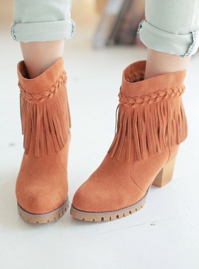 流苏装饰粗跟短靴,飘逸流苏,带来摇曳生姿的浪漫情愫,完美诠释着女性的优雅性感。 (合作媒体:)
