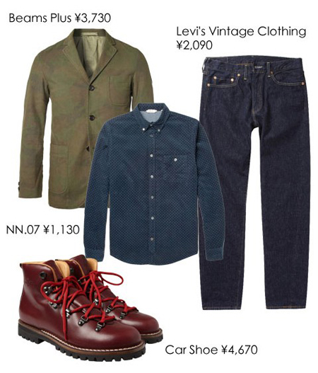 趁着天气还没凉透,周末有空穿上登山靴去郊外走走吧!深秋带着凉意的空气,万物都开始萧条,用一双酒红色的登山靴增添正能量。军绿的迷彩外套搭配上深蓝色的休闲衬衫与直筒牛仔裤,非常随意的打扮,但是每个细节都是精心挑选来彰显你的品位。