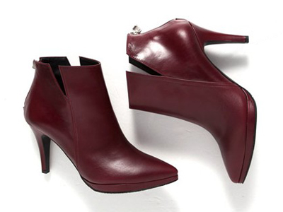 质感超棒的高跟踝靴,尖头细跟的设计,特别犀利也超有女人味,脚踝两边有小开口的处理也很有POINT,暗暗的光泽感也超显整体的质感。