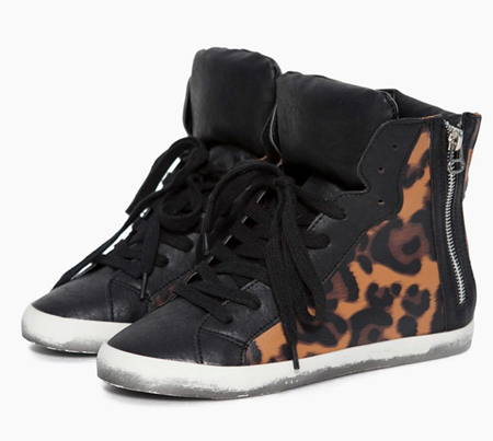 很有魅力的高帮鞋,豹纹图案的拼接,非常漂亮的设计,侧面有拉链开襟,轻便舒适的一款。