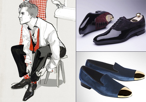 同样来自杰明街的法国制鞋匠JM Weston,基于这种潮流,推出了全新的“黑领带”系列。长款的牛津鞋有着凿子形的鞋头,使得这种风格更加精致。带流苏的休闲便鞋——乐福鞋(loafer)采用黑色漆皮,可以算得上是这一系列的主打。