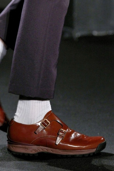 中国鞋网12月23日讯,僧侣鞋最初为罗马僧人穿着,如今却转而在T台上大放光芒——小编带你欣赏最热的2012-2013秋冬男装秀场,领略时尚设计师对僧侣鞋的独特看法,和男模的潮流演绎!