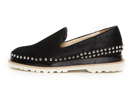 铆钉装饰的单鞋,金属铆钉围边,很特别的设计,质感比较柔软,穿着舒适,可以搭配简单的风格。
