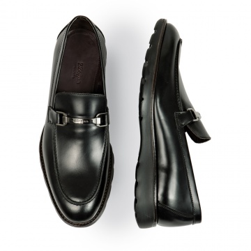 黑色皮质平底鞋,圆润的鞋头设计,奢侈的黑色皮质,处处展现完美细节,正面搭扣设计,展现出英国老派式的正统与经典。