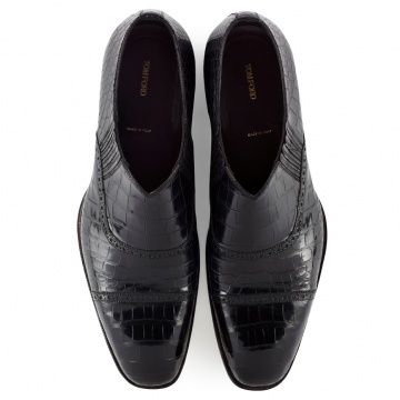 鳄鱼纹鞋履,高贵的鳄鱼纹进行精细处理,独特的鞋口设计尽显男士的稳重、踏实,又不失奢华。(合作媒体:)