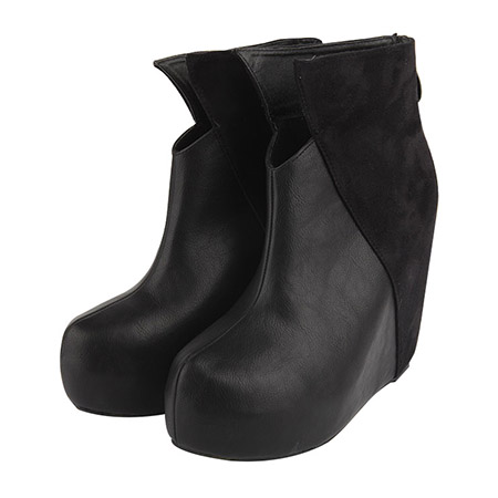 拼接款厚底坡短靴,光滑的皮革拼接贵气的绒面,鞋型也相当好看,穿起来不显得霸气,内增的水台设计穿起来不累脚。