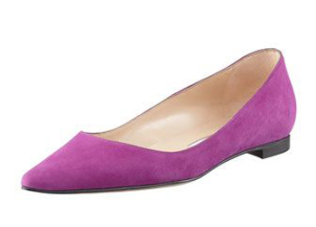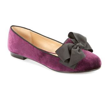 蝴蝶结细节的紫色平底鞋,温暖绒面革材质,瘦瘦的鞋型,穿起来非常好看,上脚也特别舒服。