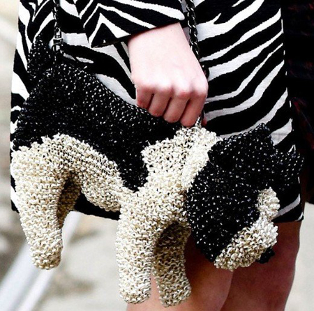 她对动物的爱不仅表现在她的外套上,还体现在这个可爱的小狗包身上