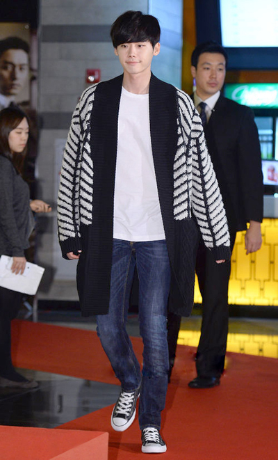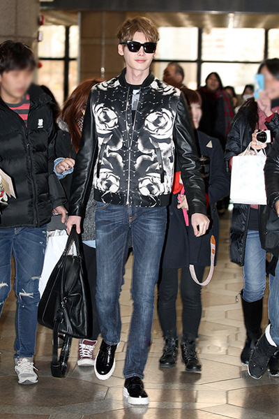 从装扮上,也将李钟硕展示出了不一样的风格,一身酷帅十足的科技印皮质花棒球外套搭配了经典款深蓝色的牛仔裤,一双白色底亮品质的运动款式鞋是不是立马将整身的质感提高了一个档次,可见鞋有着很好的画龙点睛和锦上添花的效果。