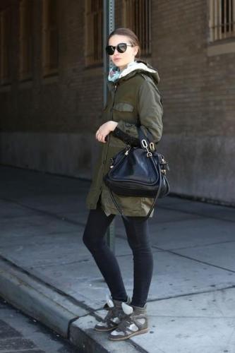 性感霸气的豹纹皮草大衣,自然而然的让人想到搭配恨天高,然而在雪地里摔个大马哈岂不有脸没地钻,还等什么,赶紧换上保暖潮物运动鞋吧,百搭的黑色是首选,坡跟款式扬起气质风帆。