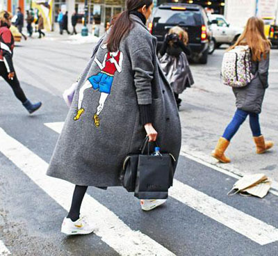 紧接而来的2014秋冬时装周街拍,摄影师们拍到了一群欢快的步伐,模特潮人这一次好像是奉旨运动,个个都换上了轻便的运动鞋,在冰天雪地里大步向前。(合作媒体:)