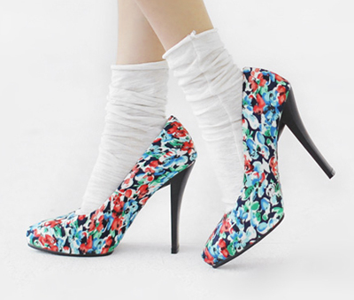 华丽的花色印染高跟鞋,扁跟的设计,后面看和侧面看的视觉感不一样,暖春的时节需要备上这么一款。