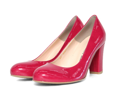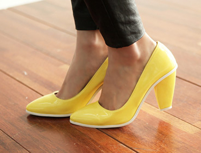 小圆头糖果色高跟鞋,柔和的线条感,十分自然又很舒适的视觉感,漆面材质,光泽感很不错,微微粗跟的设计,穿起来脚感舒服。(合作媒体:)