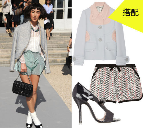 陈燃可是一枚难得的中国It gril,不是甜美的长相搭配上白色内搭与清新外套,短裤自然更能突然她的率性气质。白色的袜子搭配上黑色鱼口鞋,格外醒目。白色短袜与白色内搭上下呼应,就是开起来顺眼。