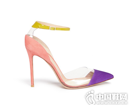 GIANVITO ROSSI 拼色麂皮PVC拼接尖头高跟鞋